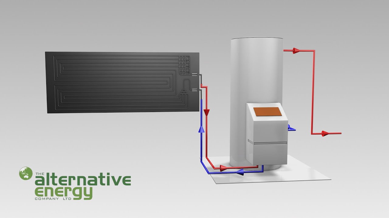[Music] hi my name is Jeff and I'm the director of the Alternative Energy company we're a progressive company and we promote the use of renewable energy and energy saving Technologies through the provision of products which reduce energy consumption and the Reliance on fossil fuels we have some exciting new products which will help dramatically improve New Zealand's green credentials your health and comfort saving you money and contributing roting to a sustainable [Music] future people may be familiar with solar domestic Hot Water Systems uh the systems they will have seen in general put water on your roof and heat it via the sun our system works in a completely different way the traditional solar domestic Hot Water Systems have a number of disadvantages they put heavy water on your roof they are prone to Boiling when the sun's out too long they don't work when the sun isn't out and they can freeze our system overcomes all those problems our system doesn't put heavy water on your roof just one lightweight panel of 8 kilos it can't boil because our system switches off once the cylinder gets to temperature it can't freeze because our system doesn't use water it uses uh a refrigerant which is at minus 22° C and it doesn't need a backup system because our system works 24 hours a day 365 days a year it even works at night our system for your domestic hot water cylinder which is 250 L of hot water only requires one panel that panel can go on the roof or on a vertical wall or on the ground even um the system itself doesn't have water in it it has a refrigerant liquid atus 22° C and this refrigerant liquid when it gets to the panel is heated by the air around the panel so it doesn't rely upon the sunshine in fact it'll even work at night well this is a compressor and this is actually attached to the outside of the cinder CER but it's concealed in a box with an electronic control panel on the top uh the compressor is there because the hot gas as it is now from the panel comes down to the compressor which compresses the gas which gives off even more heat and that travels around this heat exchanger and this is actually inside the cylinder so this is on the compressor is on the side of the cylinder this is inside the cylinder and the hot gas travels around this cylindrical coil and gives off its heat to the water surrounding it in the cylinder in so doing it cools condenses condensation gives off heat goes back to a liquid goes back to the panel and the whole thing starts again so the whole system is very simple it works all the time because it works on differential temperature and you only have to have a temperature above -1° C for it to work so in this part of the world it works 24 hours a day 365 days a year even at night so if you think that's good imagine what happens when we add more lightweight solar panels to the system we have to have a different heat exchanger one that goes in a cabinet not in the cylinder but then the system will do your central heating for your home so it can be warm all winter or it'll heat your pool so you can swim all year or both and do your domestic hot water then you can add even more panels and it will do large volumes of hot water to supply gyms holiday Parks Motel schools even hospitals our system uses nature Sun wind rain even snow to make it work and to save you 80% on your cost of heating your water year on year it's a standalone system the Next Generation technology solar that works at [Music] night ...