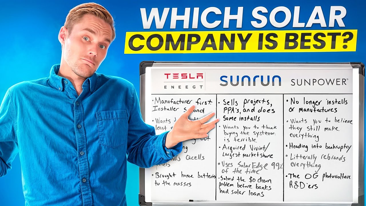 what's up guys my name is Julian you're solar expert and today I'm going to be going through the top three most recognizable brands that when people are entering the solar buying process and they're getting quotes I would say that probably 90% of Americans get a quote from at least one of these three companies and I would probably say that a lot of people maybe get quotes from a couple of them so everyone's trying to appear like they're the full package and they're the best and they these three companies offer very different things with different value propositions and so I'm going to be giving just a summary breakdown of really what these three companies even really do in the industry and help you kind of understand you know what it all means when you're researching this stuff cuz honestly finding this stuff online and really understanding this just from what's based on the internet is really difficult and it it kind of takes a human being to break it down you know for another human being so first off going solar requires a lot of stuff to happen before it actually gets on your roof and is working you have to have manufacturers actually make the products people that are doing the plans and the permits you have the city involved Consulting and the sales and the marketing departments for all these companies cuz if they can't make sales then they are not going to exist and so you have all these different parts of the whole equation and not all these companies do all those different things and so let's kind of just give a breakdown and and real fast before I get too involved with the video and I totally forget if you find this video helpful I do work in over 30 States and so if you're in any of these green States and you want help going solar give me a call I'm here to help you out all right let's start with Tesla energy what is Tesla energy well at the end of the day Tesla they're mainly a manufacturer they do install their own systems but that's because they acquired Solar City several years ago when Solar City was basically going under and Elon was trying to save it and turn it around but still to this day the installation sector of their company has never been profitable and it's actually losing money and so Tesla is currently as I speak and make this video slowly shutting Market by market down in terms of actually offering the installation part of the job to customers directly they're trying to just focus on the manufacturing which really that's what they're good at that's what Elon knows how to do and the power wall 3 which is their new battery product I think it's a really good product and that's what they need to focus on is is getting the power wall 3 to everyone versus trying to like undercut everyone else and install for basically a loss which the shareholders of Tesla are not liking because they're sucking money out of Tesla Motors to do it and so Tesla mainly manufacturer Sunrun don't they don't manufacture anything they don't make solar panels batteries inverters any of that basically what Sunrun is is they're the most aggressively fastest growing and largest solar installation company in the US they do that mostly with door knocking teams and their sales pitch is mostly for power purchase agreements and that is where it's like a 25e service agreement and you're not technically buying the system but there's a lot of hidden Clauses in there and a lot of lot of junk that they don't go into when they're selling you the system so if you're looking at a PPA through any company not even just Sunrun um give me a call and I want to make sure that you understand some of the negatives to it because usually financing is often times better for most people even though the picture that the Sunrun salesperson paints is not so they actually are pretty much required to sell mostly all ppas for the most part but that's what Sunrun wants you to do and that's really their their value proposition is hey we have something where you don't have to go into debt and you know they're they're going to let the whole world know they've probably knocked on your door at the end of the day or maybe that's what got this whole thing started as someone knocked on your door sun power so sunp power for a long time they were the OG of solar they were putting you know more money into R&D and they were manufacturing these full systems and that was great they really paved the way for this technology to to get good and ready for everyday homeowners to actually adopt and put on their home and I you got you got to love sunpow for that you know I don't I don't dislike sunpow except if you look at sunp Power today versus the explanation of what I just gave about sunow you're you're looking at two different companies because sunpow over the years has just slowly outsourced part by part every single part of the system to the point where now they still go around saying that they make everything and it's all Under One Roof and they literally don't even make anything they don't make the panels they don't make the inverters they just discontinued their battery product and so sun power is really relying on previous brand recognition and the previous work that they did in the past but unfortunately what they're selling today is not at all what they're actually describing you can go get maxion panels now separately they're not connected to sunow anymore the nphase microinverters you're using the 7th gener they're using the Seventh Generation still there's there's been an eighth generation for two years now and their battery product the sunvolt is gone now they're selling I've seen them selling like Tesla power wall 2os and 3es so I'm kind of unsure what sunow is really doing where they're adding value in the industry CU they're not really making anything they're not really doing any R&D and they're just kind of white labeling other people's prod products and then selling them with kind of a lie behind it and so I'm not trying to yo